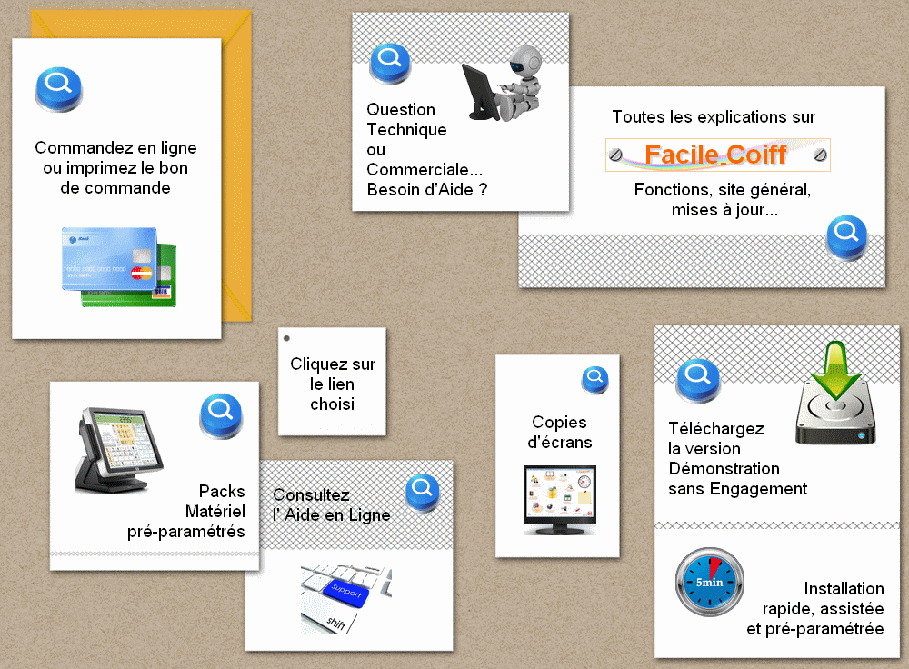 Facile-Coiff a été conçu pour les salon de coiffure de 1 à 8 personnes. En permanente évolution grâce aux retours de nos nombreux clients et aux demandes des nouveaux, Facile Coiff vous permet de bénéficier d'un logiciel performant pour un prix tout à fait raisonnable. Pourquoi un prix si bas pour un logiciel professionnel ? Nous sommes concepteur de nos logiciels et notre diffusion est faite sur internet, éliminant ainsi les frais de représentants, grossistes, revendeurs,.. La maintenance gratuite est effectuée par mail évitant ainsi les plateformes téléphoniques couteuses et encombrées. Une assistance téléphonique payante est disponible si besoin. (99% de nos clients n'ont pas eu besoin de la maintenance téléphonique pour mettre leur logiciel en place) |